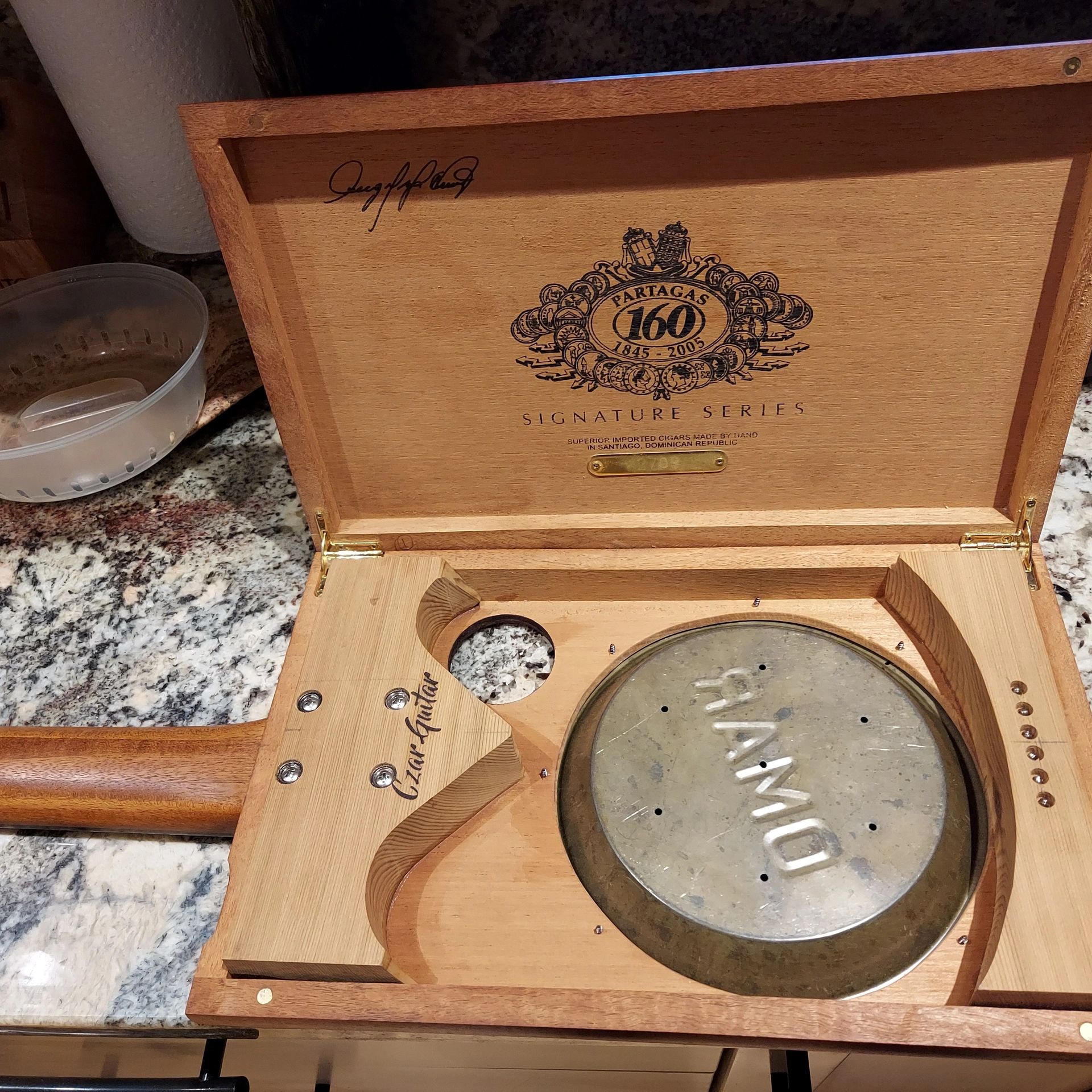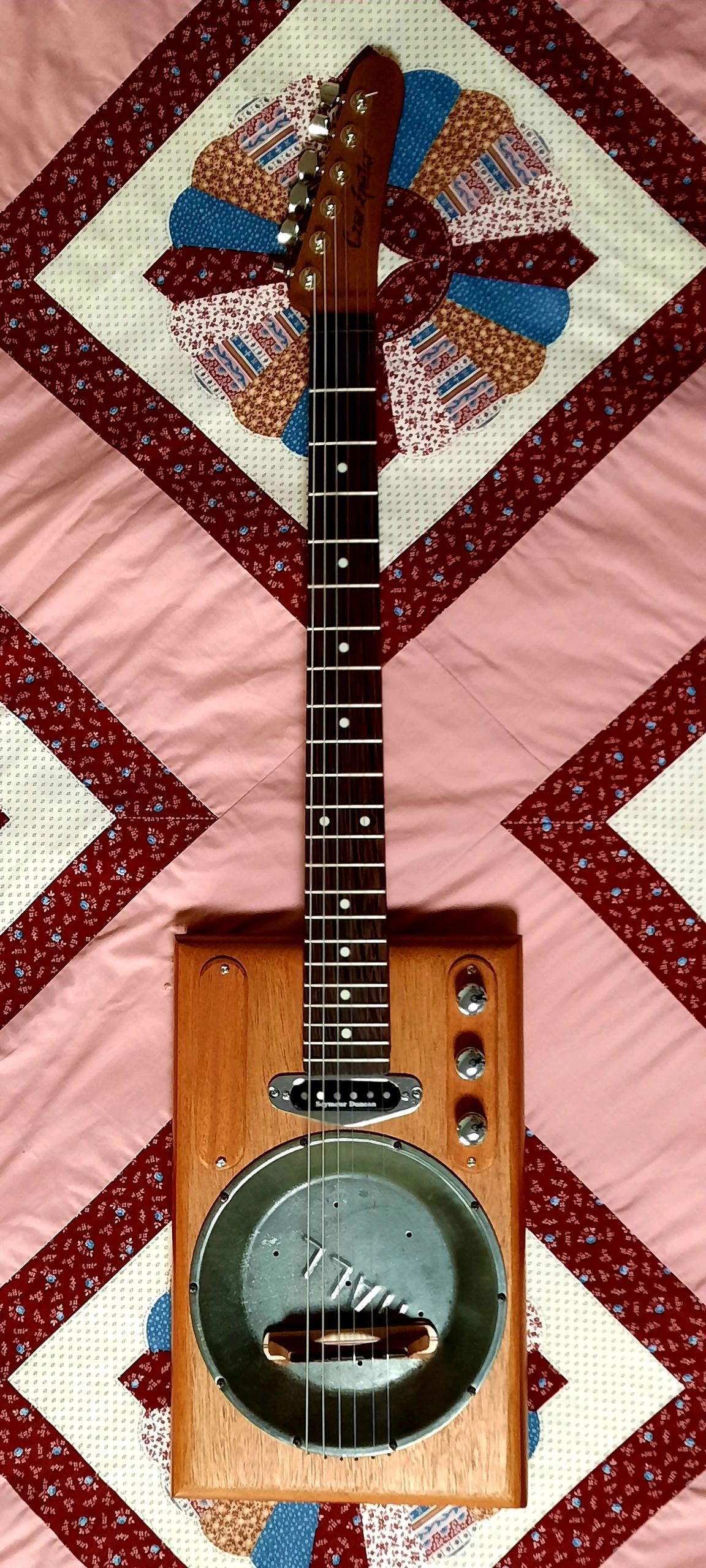 # 25 Warmoth necked acoustic Cigar Box Pie Pan Resonator